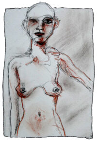 Mit einem Bleistift (HB), einem Rötelstift und einem Conté à Paris Pierre Noire 3B-Stift mit viel Schwung und wenig Überlegen nach einer Vorlage in einen CooLeathor-Block gezeichnet.